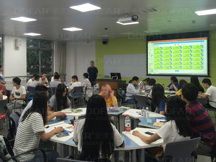 常态化智慧教室让学生通过手机参与课堂,实现及时反馈,活跃课堂气氛,激发学习热情,同时通过智慧教学云平台,集课前、课中、课后为一体,开启随时随地互动。课前,教师通过智慧教学云平台推送学习资料,学生通过手机预习;课中,学生通过手机APP与教师实时互动,实现签到、答题、提问、资料传输、分组教学等功能;课后,教师发布作业考试,完成学习效果检验。所有教学过程数据均保存在智慧教学云平台上,方便教师随时调用。