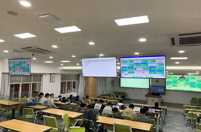 多视窗智慧教室同时能让学生通过手机参与课堂,实现及时反馈,活跃课堂气氛,激发学习热情。课前,教师通过智慧教学云平台推送学习资料,学生通过手机预习;课中,学生通过手机APP与教师实时互动,实现签到、答题、提问、资料传输、分组教学等功能;课后,教师发布作业考试,完成学习效果检验。所有教学过程数据均保存在智慧教学云平台上,方便教师随时调用。